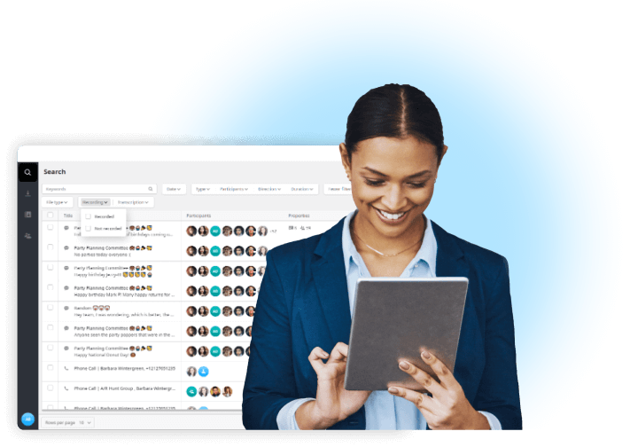 Capture and retain calls, chats and SMS to help ensure your communications are preserved in one place.